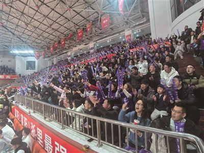 来自场外的声援不仅限于线上。诸暨“老表”非常热情,赛前,富阳城区街头电子大屏上就已滚动起他们送上的祝福标语:“这里是富阳!我们是四强!”“县大队之光!富阳老表,加油!”“诸暨老表支持富阳队!富阳队,砸砸掼进!富阳浙江王!”蓝色背景映衬着醒目的文字,字字铿锵,气势十足。