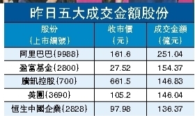 大型科網股全面造好。百度收升15.72%,為表現最佳藍籌股;商湯收報2.64元,升15.79%,為升幅最大科指成分股。中芯國際(981)收升7.12%,報67.7元並創新高。有報道稱,中芯正測試首款國產先進晶片生產設備。此外,阿里巴巴(9988)見3年高位,收升5.28%;京東集團(9618)升5.15%;美團(3690)升4.89%。