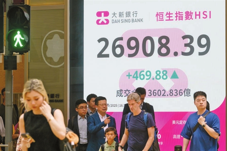 施政報告建議香港持續強化股市發展,恒指昨創逾4年新高。中新社