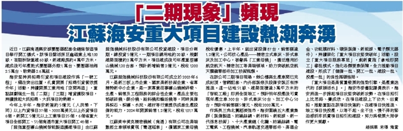 「二期現象」頻現江蘇海安重大項目建設熱潮奔湧
