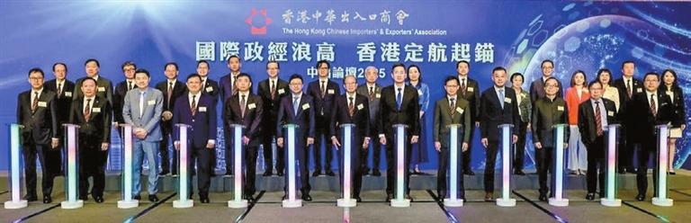 香港中華出入口商會品牌項目「中出論壇2025」,昨日在會展中心隆重舉行。今年主題是「國際政經浪高 香港定航起錨」。
