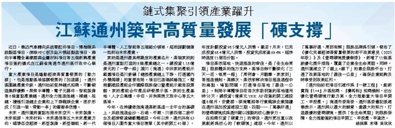 江蘇通州築牢高質量發展「硬支撐」