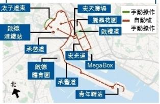 據文件介紹,測試路段長約23公里(九龍城約14.5公里,觀塘約8.5公里),測試路段涵蓋承豐道、承啟道、沐安街、啟成街、啟華街、宏光道、啟信道、宏照道、啟祥道、常悅道、常怡道、沐翠街、協調道、沐元街等。停車點包括社區隔離中心(青年驛站)、沐安街(啟德站)、機電工程署總部大樓、宏天廣場、常悅道、零碳天地、沐翠街、沐元街(Airside/啟德站),充電位設於宏天廣場停車場。