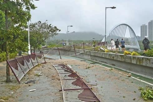 「樺加沙」吹襲香港期間,將軍澳海濱公園一帶受損嚴重。中新社