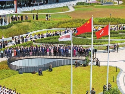 【香港商報訊】記者周偉立報道:啟德體育園昨日舉行開幕後首個國慶升旗儀式,慶祝中華人民共和國成立76周年,逾百位嘉賓出席。同場舉行充滿濃厚中華文化特色的互動攤位及國家安全教育展覽,吸引大批市民及遊客參與,現場洋溢熱鬧的國慶氣氛。