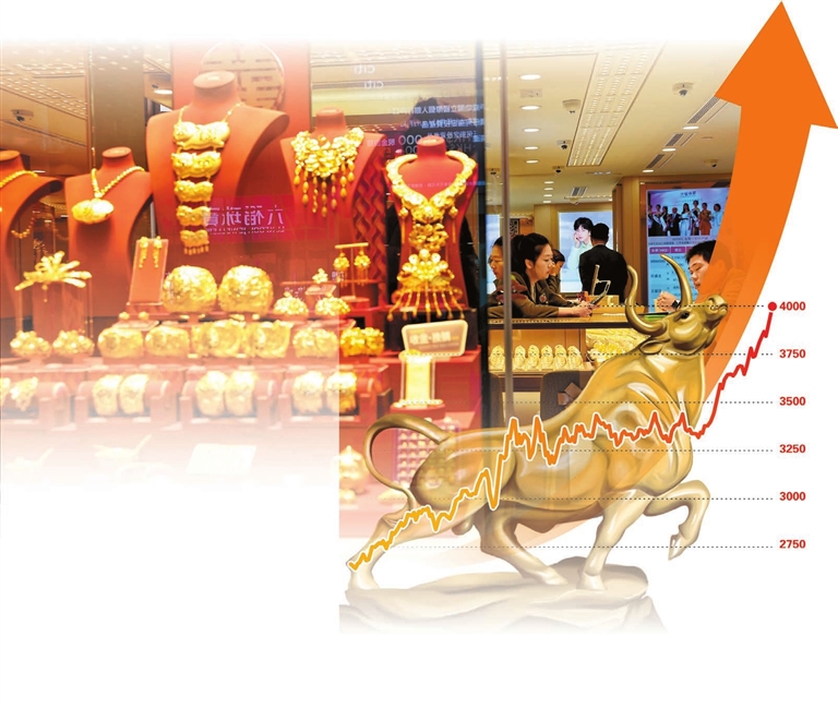 截至上周,黃金價格已連升7個星期。而自年初以來,金價累計漲幅已達53%。「飆升」一詞確實可以概括今年金價走勢:3月份,突破3000美元;9月底,站上3800美元;如今,進迫4000美元整數關。事實上,紐約黃金期貨盤中已創下4000.1美元的新高,這是黃金價格首次突破4000美元。