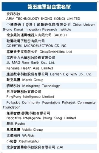 【香港商報訊】記者李銘欣報道:昨日,引進重點企業辦公室(引進辦)舉行重點企業夥伴簽約儀式,公布第五批重點企業名單。今批簽約涉18家企業,海外企業佔四成,包括3家全球龍頭醫藥企業——英國葛蘭素史克(GSK);瑞士羅氏(Roche);德國默克(Merck),還有來自美國、結合創科的文創企業阜博集團(Vobile,3738.HK)、內地著名社交平台「小紅書」等。財政司司長陳茂波致辭稱,連同之前的四批企業,本港引進重點企業數量已超過100家,未來幾年將投資約600億元,創造超過2.2萬個就業崗位。