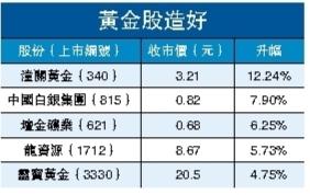當天,現貨金升穿4200美元/盎司,再創新高。紫金(2899)升4.7%,收報33.5元;招金(1818)升2.3%,收報32.36元,中國白銀集團(815)升7.9%,收報0.82元;潼關黃金(340)更升12.24%,收報3.21元。