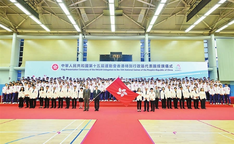 行政長官李家超昨日主持十五運會香港特區代表團授旗儀式。