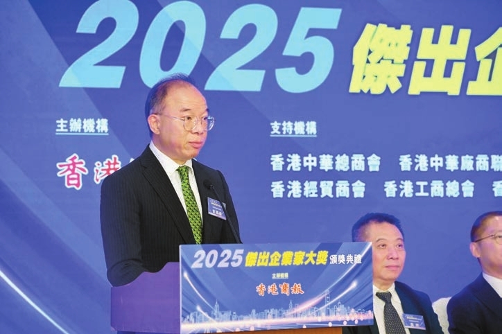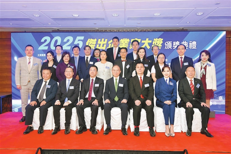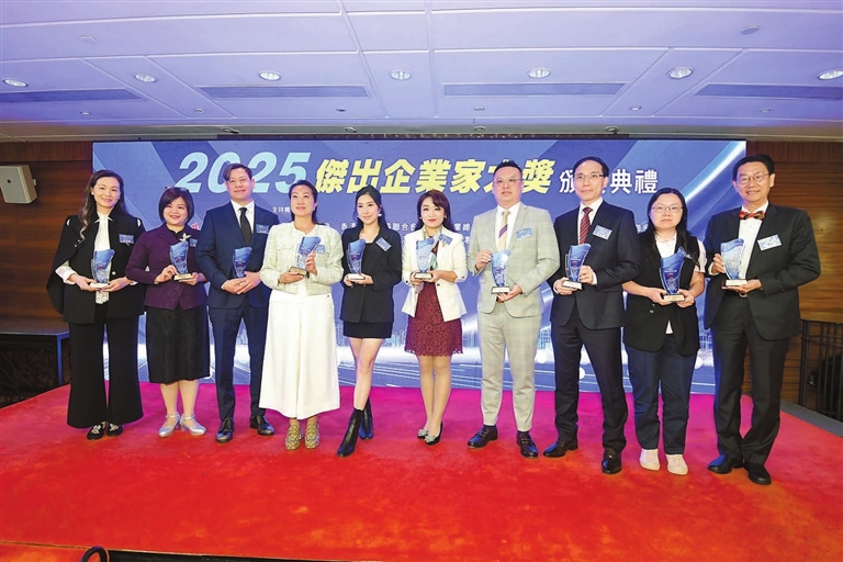 【香港商報訊】記者呂明霞、康鈞淼報道:「2025傑出企業家大獎」頒獎典禮昨日假尖東海景嘉福洲際酒店隆重舉行,羅少雄、陳李玉佩、梁詩詠、林惠玲、梁穎雯、胡志遠、黃凱貽、劉婷、潘可榮、魏志偉等10位傑出企業家喜獲殊榮。這一評選活動由香港商報主辦,香港中華總商會、香港中華廠商聯合會、香港工業總會、香港中華出入口商會、香港僑界社團聯會、香港經貿商會、香港工商總會、香港專業聯盟、香港政協青年聯會及粵港澳大灣區青年總會等作支持機構。