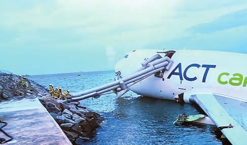 【香港商報訊】記者區天海報道:香港國際機場發生罕見嚴重航空事故,一架貨機昨日凌晨由迪拜來港於機場北跑道降落時,衝出跑道墮進海面,期間一輛機場保安公司巡邏車被撞,連人帶車被撞落海,車上兩人墮海死亡,貨機上4名機組人員則無受傷。民航意外調查機構正進行調查,而機場昨日運作並無影響,有業界專家懷疑飛機滑落時偏離跑道或有機會與強風有關。