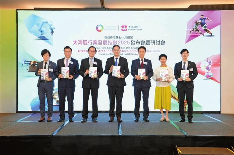 【香港商報訊】記者韓商報道:昨日,團結香港基金與大新銀行(2356)聯合發布《大灣區行業發展指數2025》(下稱「指數」)。指數反映,香港三大行業繼續領先蟬聯大灣區榜首,包括金融服務、貿易及物流、文化體育及旅遊;深圳及廣州連續兩年分別在創科及製造業方面穩居頭兩位,香港列第三。指數更顯示,大灣區綜合六個重點行業按年增長率由去年的4.9%加快至今年的7.1%,其中創新科技成為增長的火車頭,按年增長率達14.8%。