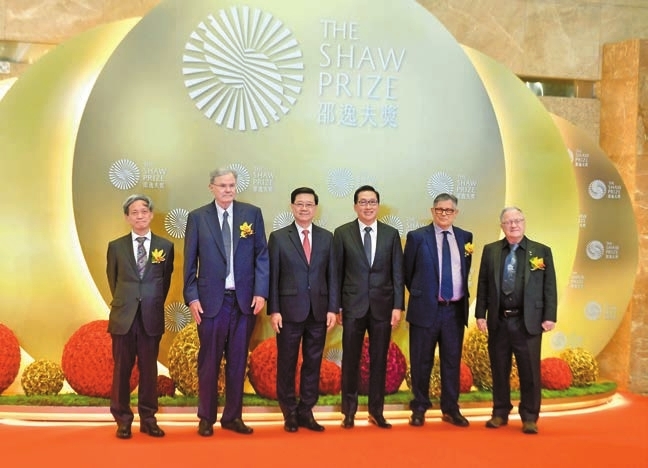 邵逸夫獎於昨晚舉行頒獎典禮,行政長官李家超出席活動並與得獎者合照。 記者 崔俊良攝