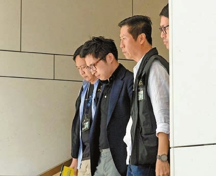 網紅林作(左二)在2023年9月18日被拘帶署扣查。
