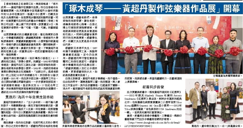「琢木成琴——黃超丹製作弦樂器作品展」開幕