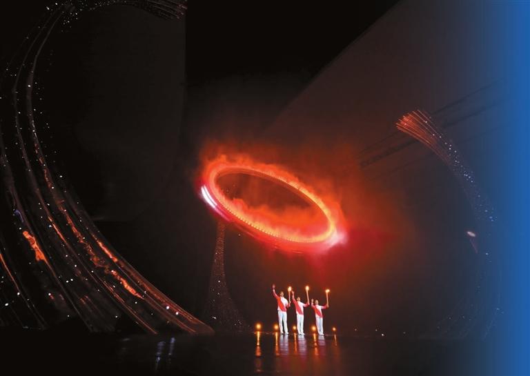 激動人心的場內火炬傳遞和主火炬點燃儀式開始。11月2日,第十五屆全運會火炬在粵港澳三地同步傳遞,最後匯入廣東奧體中心。萬眾矚目下,馬琳、陳若琳、黃金寶、方文浩、郭晶晶、王欣瑜、王柳懿、王芊懿、梁偉鏗、賴宣治、冼東妹、容志行等12位火炬手接力傳遞,最後由蘇炳添、張家朗、李禕共同點燃全運會主火炬。