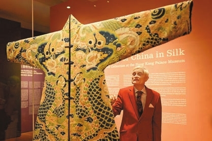展覽「絲綢中國——香港故宮文化博物館賀祈思收藏」從博物館獲承諾捐贈的「賀祈思收藏」中精選逾100件藏品,涵蓋戰國時期到20世紀初,系統性展示不同絲綢文物。藏家賀祈思在劍橋大學修讀歷史系,後成為特許會計師,他與絲綢的緣分始於1978年他決定定居香港那年,在超過四十年時間,不斷蒐集及保存中國織繡珍品:「我熱愛中國與中國紡織藝術,就是期盼讓它們回到絲綢起源地作研究與展示。這次展覽除向公眾展示巧奪天工的絲織工藝,也為尚待深入探索的中國紡織研究領域作出貢獻。」