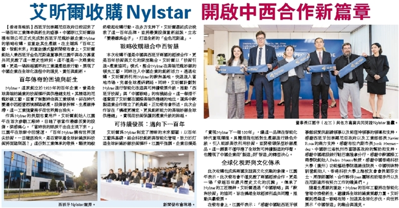 艾昕爾收購Nylstar開啟中西合作新篇章