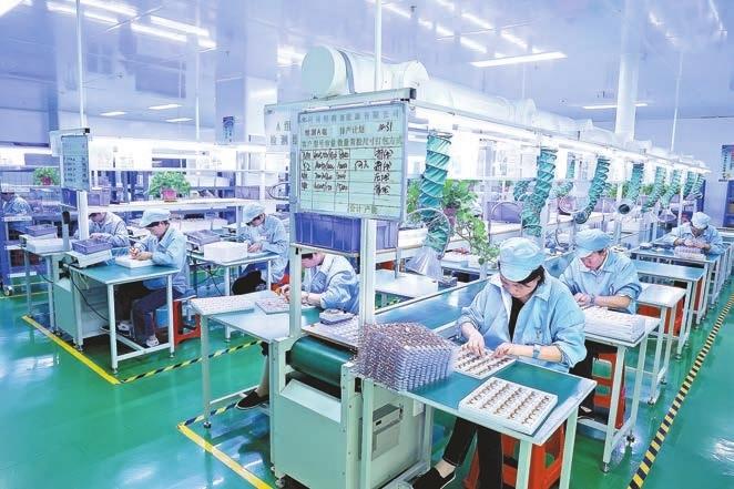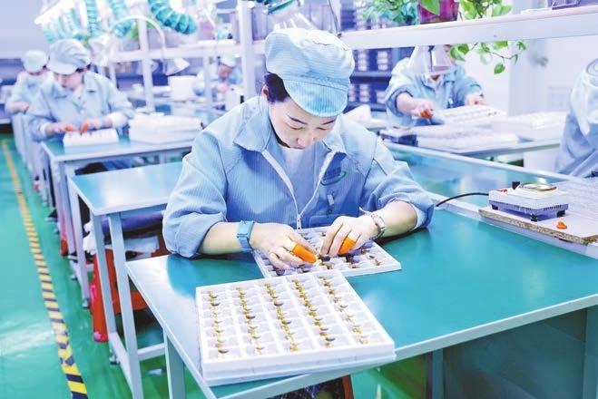 萬鋰新能源的生產車間,忙碌有序的氛圍撲面而來:端檢區、預裝區的工作人員各司其職,在緊湊而高效的節奏中推進每一道工序。一片片鋰電池歷經多道生產流程的精準組裝,順利下線後再經嚴格包裝,正源源不斷地從這裏發往世界各地。「咱們這個車間專門負責鋰電池組裝,現在每天能生產60萬隻。」該公司裝配車間主管周世明向記者介紹時,言語間滿是底氣。