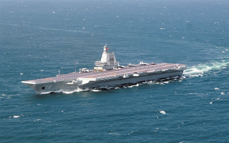【香港商報訊】綜合消息,日前,由海軍福建艦、延安艦、通遼艦等多艘艦艇組成的航母編隊在完成海上訓練任務後返回三亞某軍港。這是福建艦入列後首次海上實兵訓練。