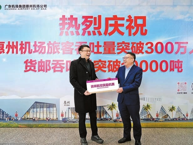 惠州機場公司向第300萬名幸運旅客贈送機票。 秦海偉攝