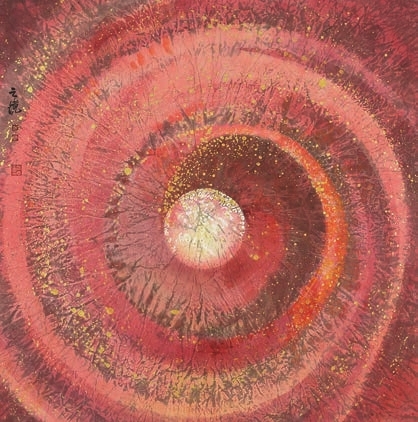 最近,趙之境的一組新作《匯聚》引起藝術界的注意,作品靈感來源於三江之源沱沱河,以「朝聖般的肅穆」面對文明血脈,以蜿蜒流淌的色帶、自然交融的彩墨為視覺載體,在宣紙上構建起一個關於宇宙洪荒、文明肇始與生命永恒的宏大敘事,實現了東西方形式的自覺「匯聚」。毛姆在《月亮與六便士》中寫道,皈依可如滴水穿石,趙之境正屬此類。他多次孤身深入西藏腹地無人區,將創作轉向生命哲思,誕生了《天問.源》系列。激蕩的潑墨打破傳統桎梏,以水墨層次構築宇宙意象,融合西方抽象表現主義的精神內核。潑墨與抽象主義雖分屬東西方,卻共同探索「非具象表達」,趙之境的早期作品《雨後》已現端倪——草原細流、百川歸海的氣象,與沱沱河共鳴,成為今日「匯聚」之源。藝術家外表溫和,心中如火般的熱情,如毛姆筆下的斯特里克蘭德,甘赴「怪石嶙峋的山崖」,他多次孤身入藏,尋找靈感,閉關創作,才誕生了鳳凰涅槃般的作品。《逝者如斯夫》系列,正緣於此。這是孔子的名言,出自《論語.子罕》,子在川上曰:「逝者如斯夫!不舍晝夜。」孔子以流水比喻時光流逝,強調萬物變遷不可逆,孟子強調本源不息。趙之境以此為題,整個系列作品傳達了時間的流動和生命的短暫。將東方哲思與西方抽象形式深度熔鑄。畫面融匯立體主義的空間解構與未來主義的動態軌迹。深邃藍色中,東方綿長與西方銳利交織,彷彿時光低語:生命如流水,不舍晝夜。