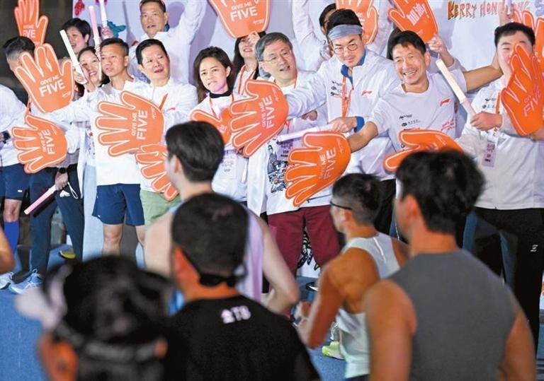 【香港商報訊】記者李報欣報道:「香港街馬」昨早舉行,超過2萬人報名,有逾1.8萬名跑手出席。主持起步禮的政務司副司長卓永興形容,香港體育盛事停不了!他並擔任星級啦啦隊隊長,為參賽者打氣助威。活動壓軸環節「領袖跑」有運輸及物流局局長陳美寶等近百名政府人員參與,陳美寶於起跑前致辭時稱,中九龍繞道是貫穿九龍東西的主幹道,齊集「上天、下海、落地」的元素,既有天橋,又有海底及地底隧道;期望六號幹線(茶果嶺段)明年全線通車後,可再和香港街馬合作。