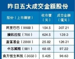 恒指季檢上周五揭曉,信達生物(1801)獲納藍籌,全日升5.4%,以最高位92元收市;零跑汽車(9863)獲納入恒科指,全日亦急升5.84%,收50元。