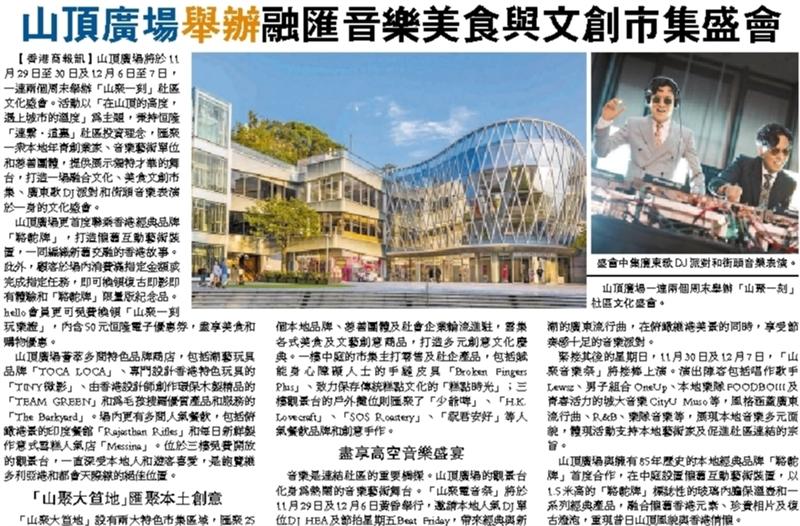 山頂廣場舉辦融匯音樂美食與文創市集盛會