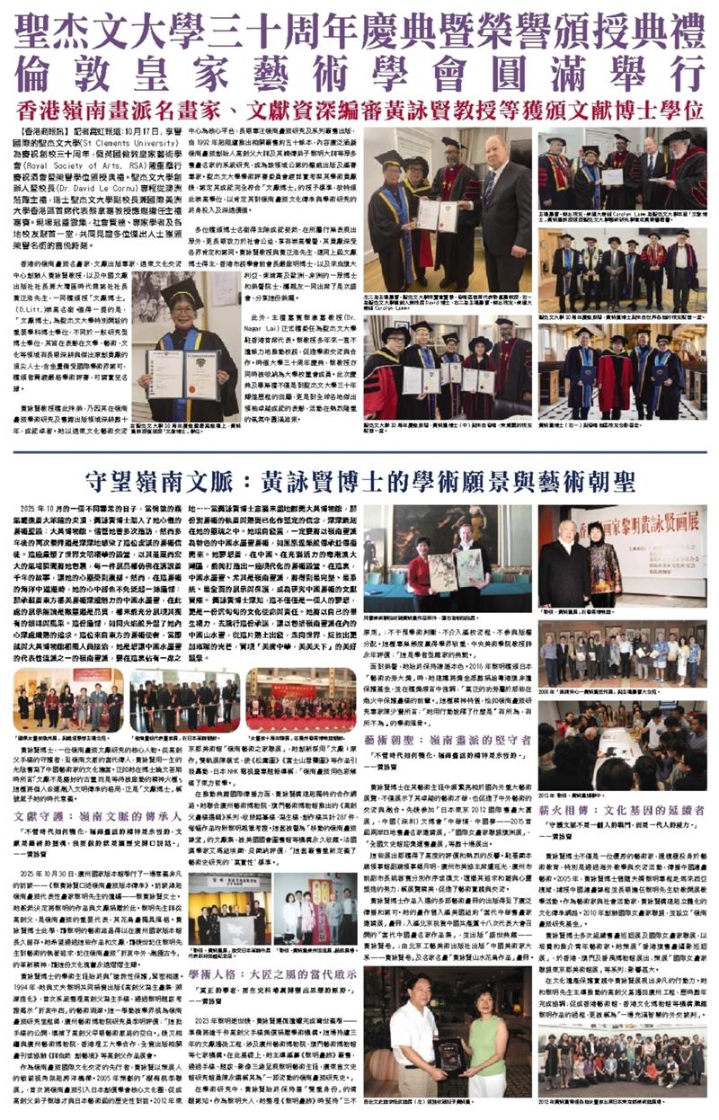 聖杰文大學三十周年慶典暨榮譽頒授典禮倫敦皇家藝術學會圓滿舉行