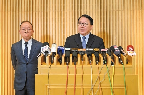 政務司司長陳國基(右)昨日在政制及內地事務局局長曾國衞(左)陪同下,就立法會換屆選舉的安排會見傳媒。政府新聞處