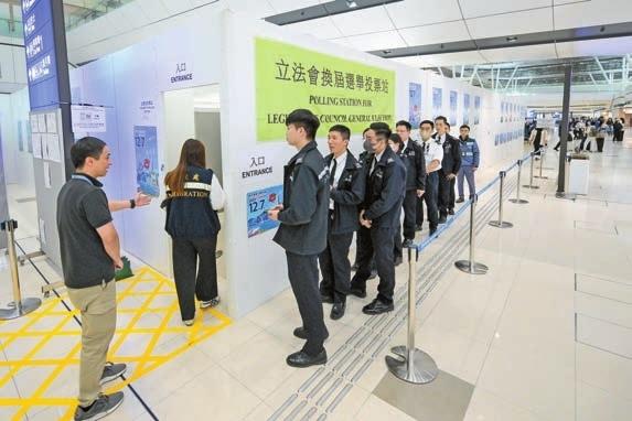 香港國際機場工作人員到機場邊境投票站投票。中新社