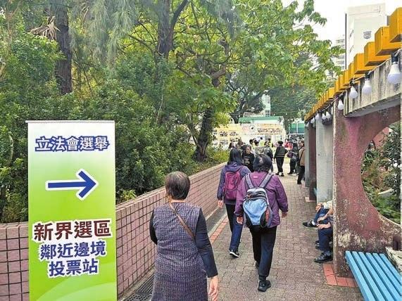 在上水的香港道教聯合會鄧顯紀念中學,設立了鄰近邊境投票站,昨日早上陸續有市民從深圳、廈門等專程返港投票。中通社
