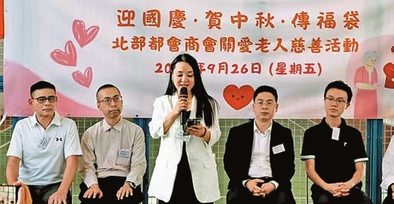北部都會商會主辦「迎國慶·賀中秋·傳福袋」關愛老人慈善活動,李金會致辭。
