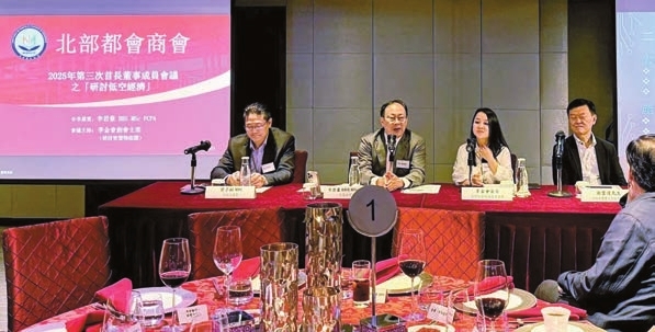 北部都會商會舉行2025首長董監事會議,全國政協委員李君豪(左二)應邀分享「研討低空經濟及智慧物流園」。