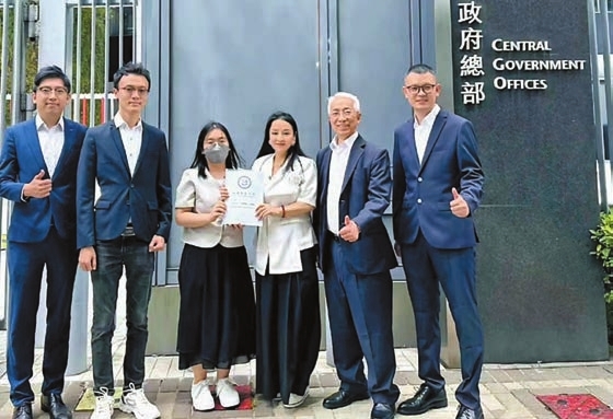 北部都會商會一行在李金會(右三)帶領下,到政府總部遞交「2025施政報告建議書」,由特首辦政策組行政主任駱嘉琳(左三)接收。