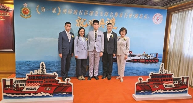 林惠玲(左二)與兒子一同出席「第一屆消隊處社區應急先鋒名譽會長會(離島區)就職典禮」。