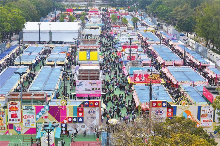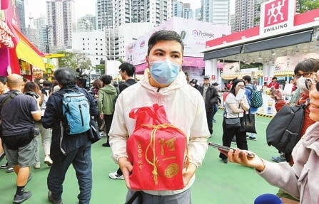 【香港商報訊】記者李銘欣報道:由香港中華廠商聯合會(廠商會)主辦的「第59屆工展會」由昨日起一連24天假銅鑼灣維園舉行。主辦單位廠商會表示,在盛事經濟帶動下,本港的人氣與財氣雙雙回歸,預料今年入場人次可達130萬,銷售額達10億元。推出限量1元優惠的攤位一度吸引逾百名市民排隊等候搶購。有參展商表示,往年一向是下午才會多人,昨天是早上一營業就超多人,對工展會首日人流非常滿意。