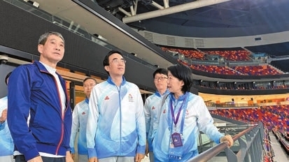 中國殘疾人聯合會主席、中國殘疾人奧林匹克委員會主席及本屆殘特奧會組委會主任程凱(前排中)率領代表團,參觀啟德主場館及無障礙設施。 啟德體育園圖片