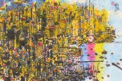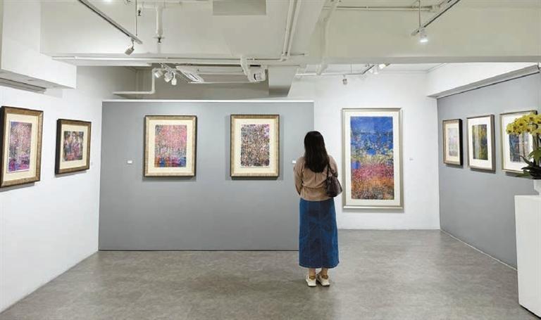 展覽還能細觀藝術家各有千秋的夜景作品,如《街燈》以墨渲染夜間街道,路燈、交通燈及建築物的燈光融合,車輛在夜燈下若隱若現;《火樹銀花》描繪香江生氣勃勃、煙火璀璨,筆觸縱放盡,顯現都會的繁華熱鬧。林天行的夜景作品,不刻意用大面積朦朧暈染表現夜色的「暗」,而是在蒼茫壯偉的夜間山川間,細繪樓宇聳立的挺拔、雲卷雲舒的靈動;燈光與星光在畫面中閃動,似在低語香江夜色裡的每個奮鬥故事,這正是近看其質的精妙體現,讓宏大的夜色場景裡藏着可觸可感的人文溫度。《夜。香港》系列既是林天行對香江夜色的深情詠嘆,亦寄寓了他對香港由治及興的殷切厚望,以及對這片土地的深沉眷戀。