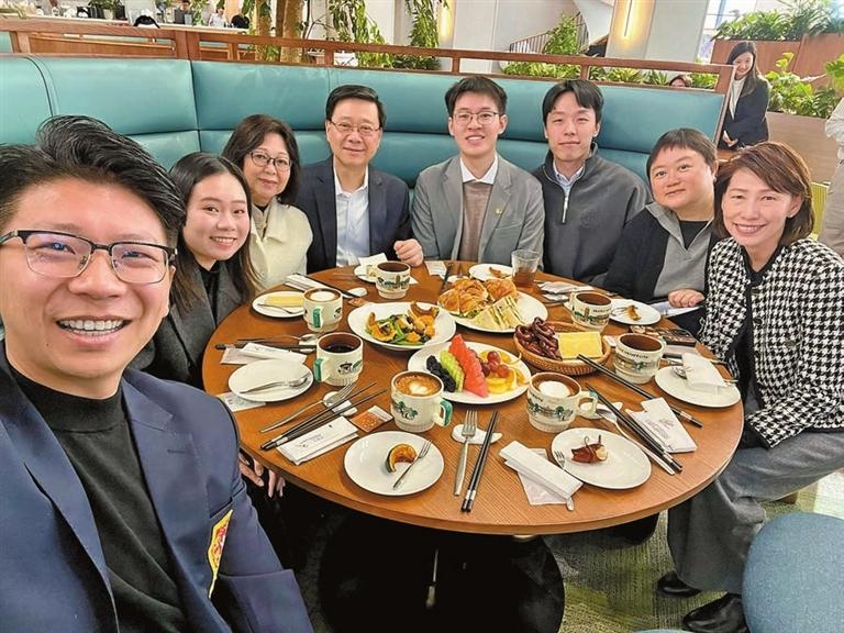 李家超介紹,4位與他見面交流的香港青年都在創科領域發展。在京創業10年的David是青少年科技教育公司董事長;Jeffrey自2018年出任港資醫療器械企業總經理,並在立法會選舉期間積極帶領在京港生返港投票;Beverley穿梭北京及深圳工作,是公司Web 3項目總監;Peter則是歷來首位就讀北大航空航太工程的香港學生。