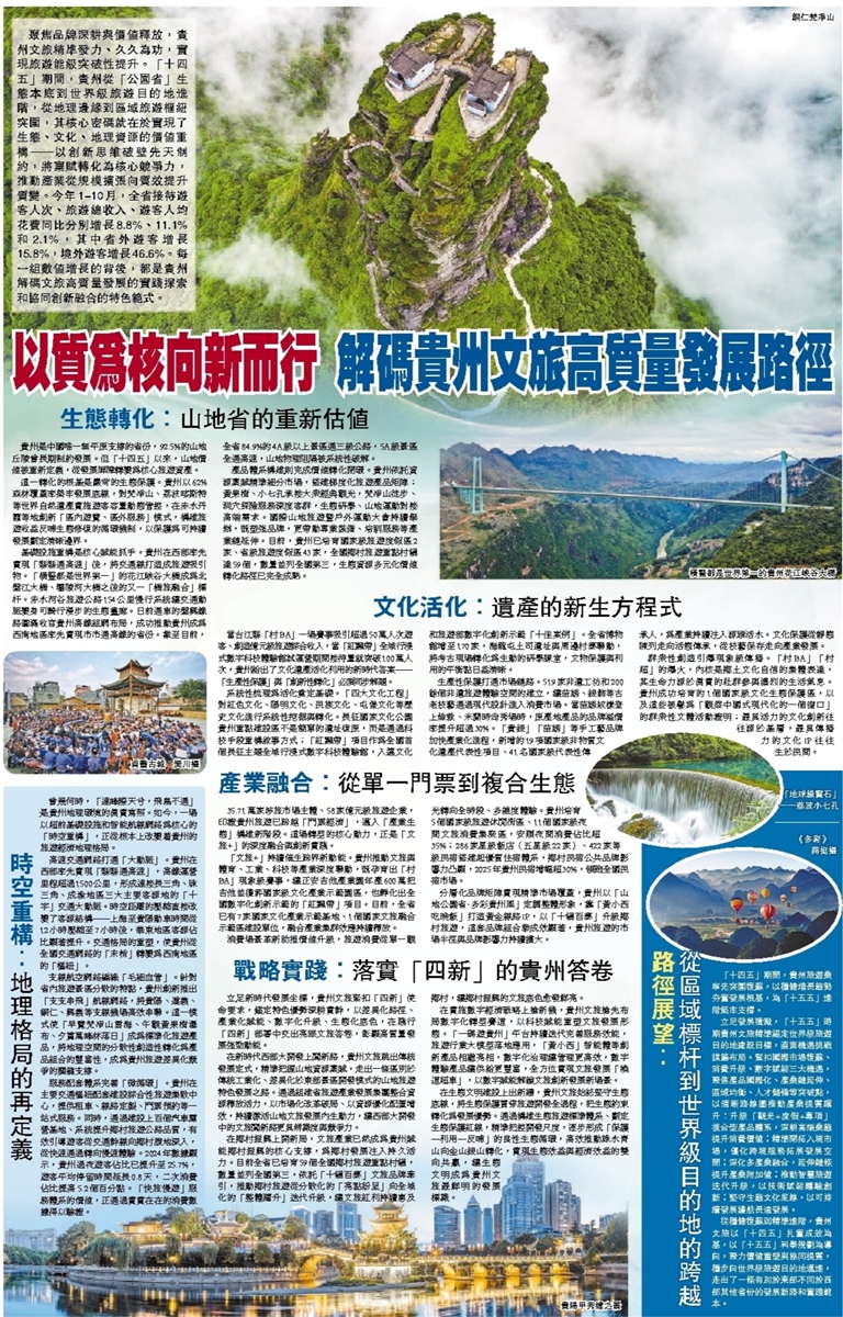 從穩健復蘇到精準進階,貴州文旅以「十四五」扎實成效為基,以「十五五」科學規劃為導向,聚力價值重塑與協同提質,穩步向世界級旅遊目的地邁進,走出了一條有別於東部不同於西部其他省份的發展新路和實踐範本。