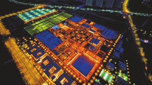 從夯土牆下入城,身前身後截然不同,這面15米的高牆「包裹」着觀眾,彷彿與外界隔絕。如果從天空俯瞰,會發現幻城的主城區劃分為一個個「嚴整規矩」的中國院子,這是以中國古代營城的形制「里坊制」為規劃起點,以圍棋棋盤式的規則格網為基本布局,創造出的獨特建築。56個迷宮般的院落,仿若一個能夠包羅萬象的城池,豐富而又捉摸不定的「迷陣」,而21個劇場就藏身其中。