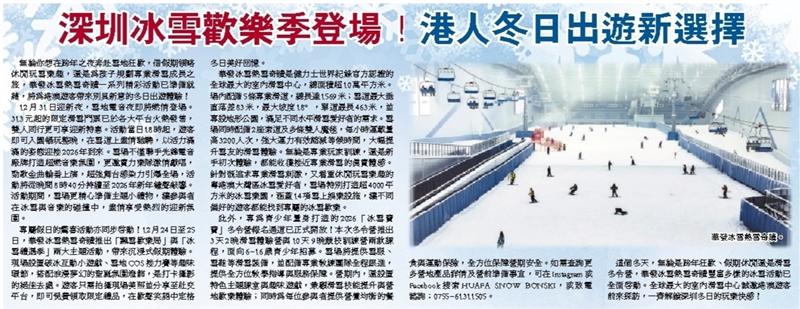 深圳冰雪歡樂季登場!!港人冬日出遊新選擇