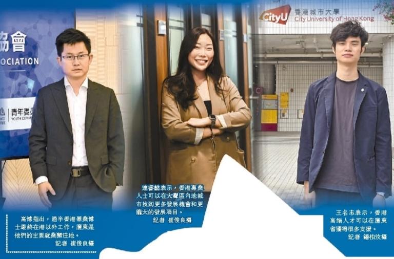 香港青年科學家協會今年早前發布的調查數據顯示,今年初香港在讀博士生約16958人,每年有逾3000名博士生畢業。身兼全國青聯常委、中國青科協理事的高博說:「超過一半香港畢業的博士最終在香港以外工作,廣東省是香港博士們的主要就業關注地,超過三成都有意向在廣東省就業和發展。」