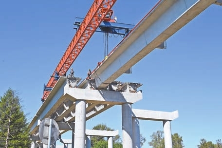 2025年3月12日,松花江特大橋主航道橋鋼箱樑首節段吊裝順利完成;5月19日,首榀40米預製箱樑穩穩落在陸上引橋104#橋台上,標誌着引橋部分正式邁入上部結構施工階段。為確保鋼箱樑吊裝過程安全可控,項目團隊以預先設置的測量控制網為基準,精準把控拚裝線形及接口精度;在箱樑架設前,對架橋機等關鍵設備進行全面調試與維護,對施工人員開展詳細的技術培訓和安全交底,現場技術人員和安全員對每一個操作環節進行嚴格把控,確保樑體架設位置精確無誤。每一個重大節點的順利推進,都離不開對工程質量的極致追求。