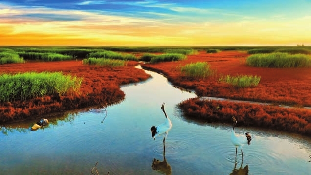 在紅海灘廊道,作家們與扎根濕地30年的養鶴人促膝長談,見證2.5萬畝鹽地鹼蓬修復的生態奇觀,邂逅丹頂鶴漫步冰雪葦海的靈動景致。這片擁有世界最大濱海蘆葦濕地的土地,60.84%的國土面積為濕地,通過「退養還濕」恢復濕地8.59萬畝,已成珍稀鳥類的「棲息天堂」。