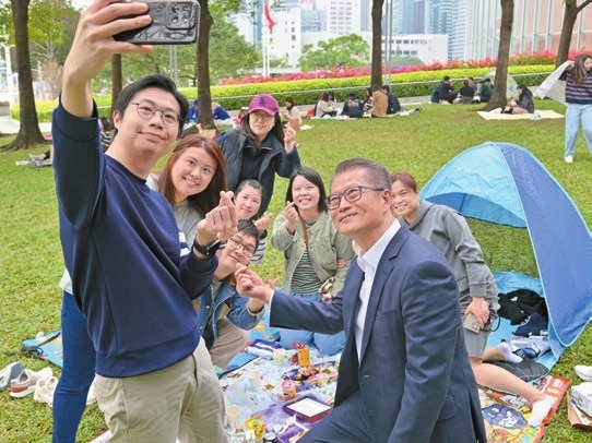 聖誕前夕,陳茂波到添馬公園與市民交流。 陳茂波網誌圖片