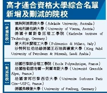 【香港商報訊】記者馮仁樂報道:特區政府昨日公布,高端人才通行證計劃(高才通)經年度更新的合資格大學綜合名單將於2026年1月1日生效。綜合名單新增5所院校並刪除4所院校(詳見附表),總數增至200所。