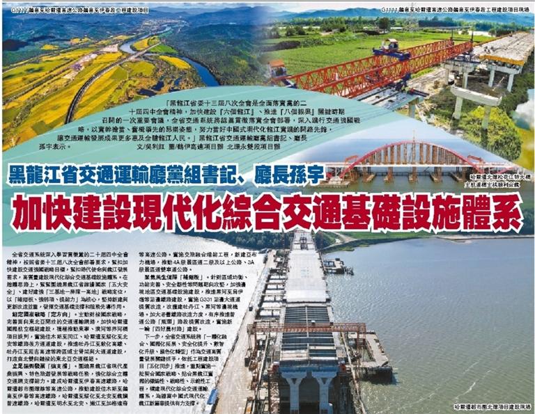 「黑龍江省委十三屆八次全會是全面落實黨的二十屆四中全會精神,加快建設『六個龍江』、推進『八個振興』關鍵時期召開的一次重要會議,全省交通系統將認真貫徹落實全會部署,深入踐行交通強國戰略,以實幹擔當、奮楫爭先的昂揚姿態,努力當好中國式現代化龍江實踐的開路先鋒,讓交通運輸發展成果更多惠及全體龍江人民。」黑龍江省交通運輸廳黨組書記、廳長孫宇表示。文/吳利紅 圖/鶴伊高速項目辦 北環永雙段項目辦